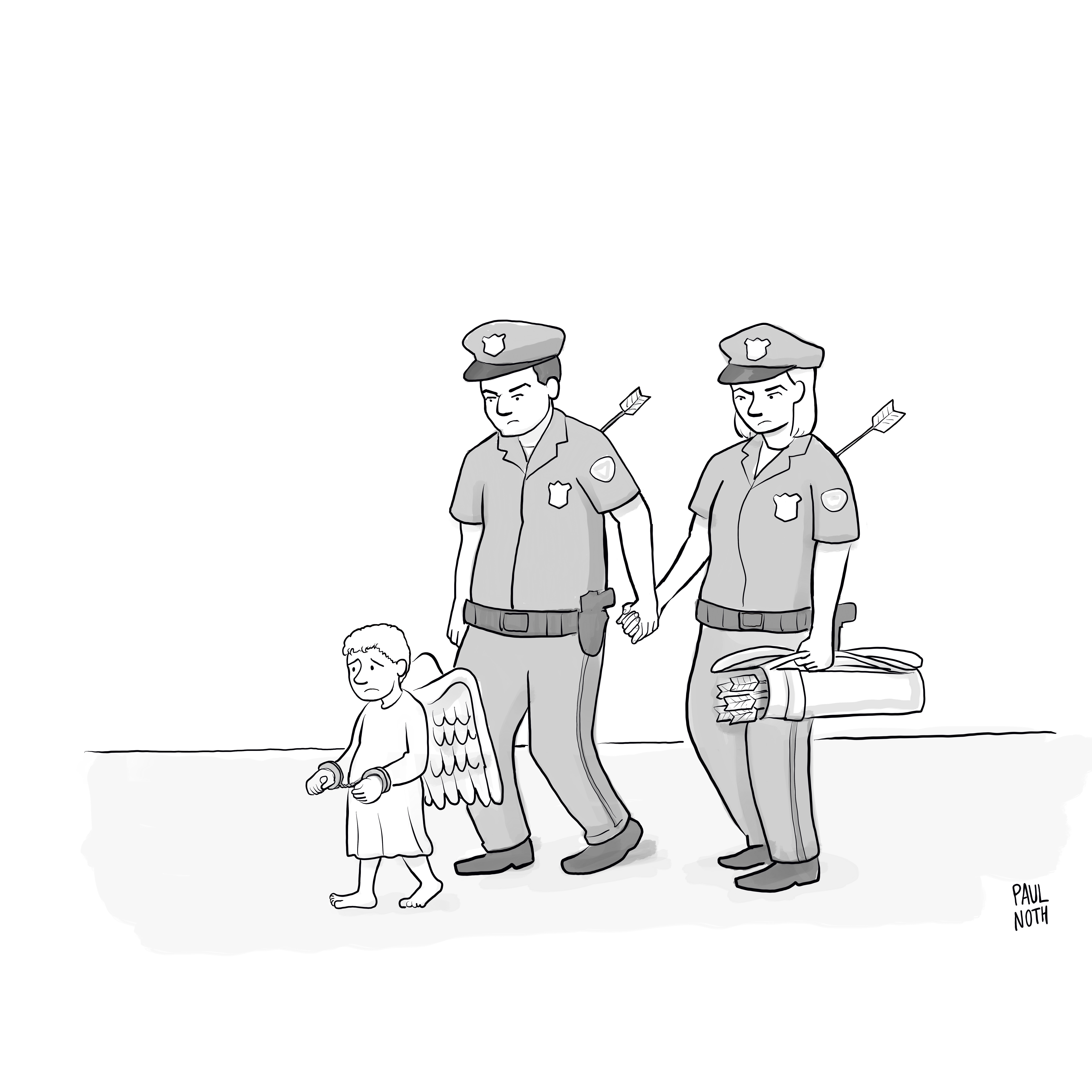 I recall looking at this one in a pile of other rejects when the revision popped into my mind. I knew instantly it would be more salable and popular—but also that something would be lost. It wouldn’t quite have the same punch. In retrospect, I’m glad I made the change. Removing the social satire about masculinity makes it, at least to me, somehow more of a Valentine’s Day cartoon.
