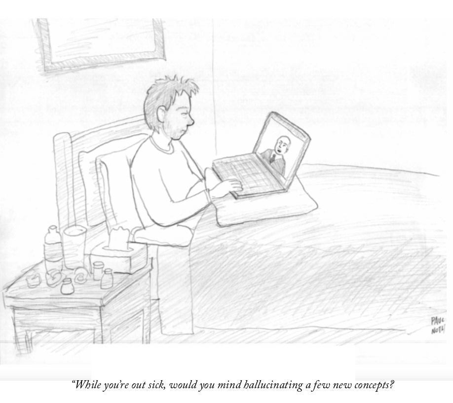 So my body’s sick with the flu, my heart’s sick from current events, and my mind’s so fuddled I can’t tell DayQuil from NyQuil. But duty calls. The stack must be stacked—though I’m really relating to the kid in this cartoon right now.