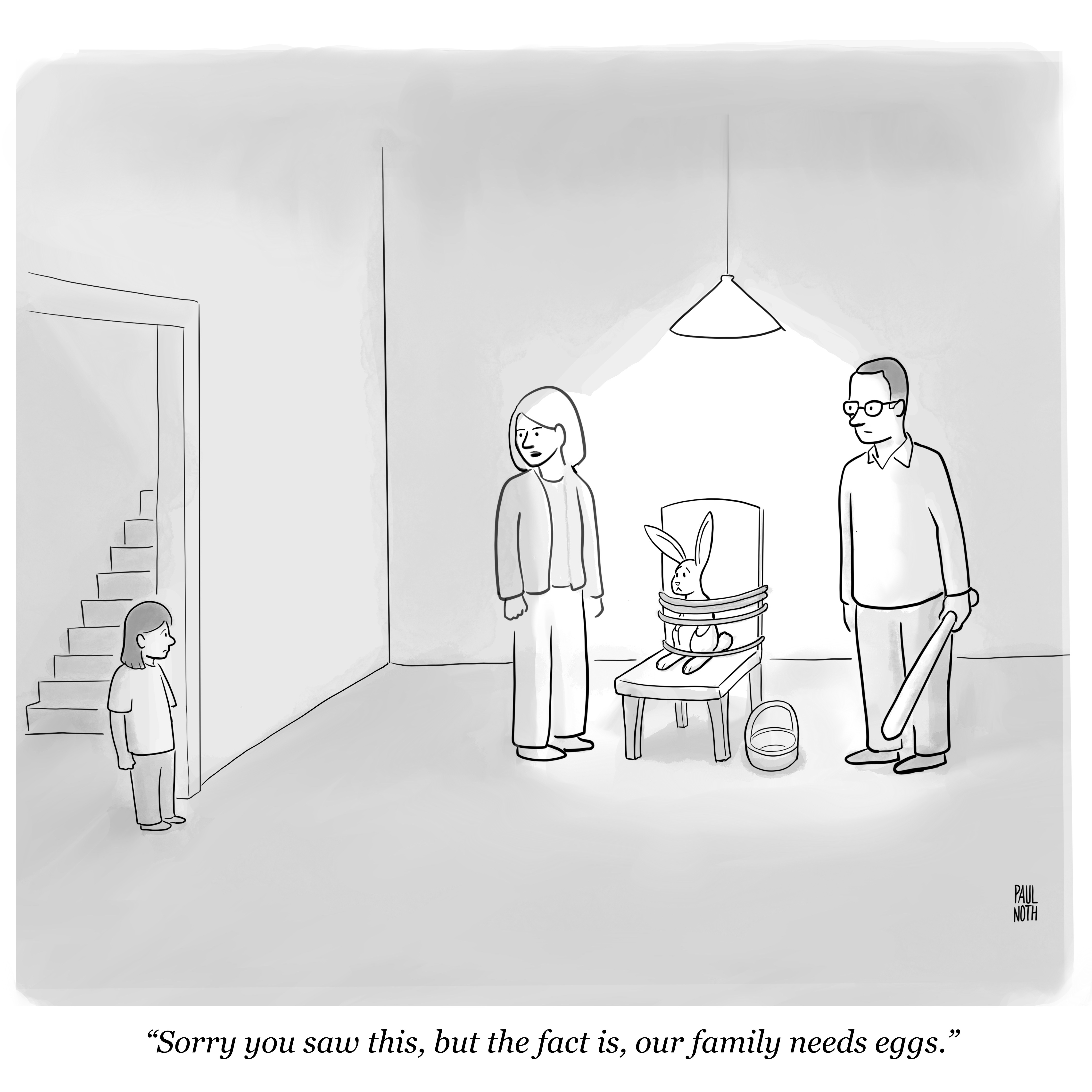 Due to an accident at the Noth Things factory, we are all out of words—save for “Happy Passover” and “Happy Easter.” We will be relying solely on cartoons this week.