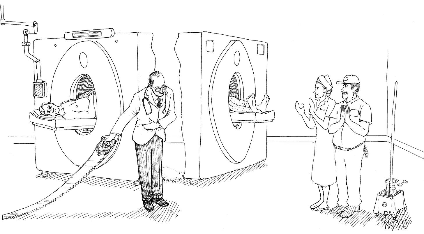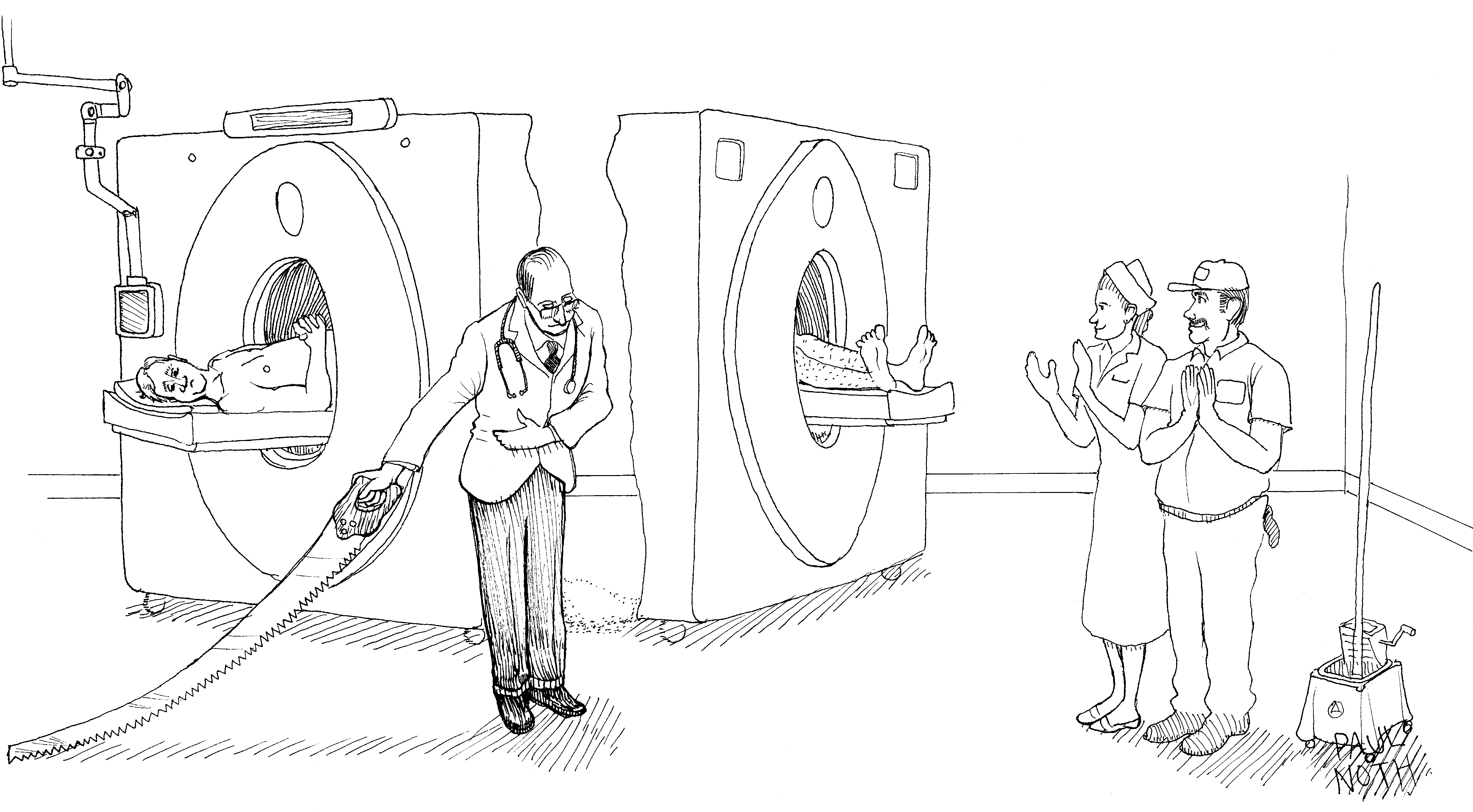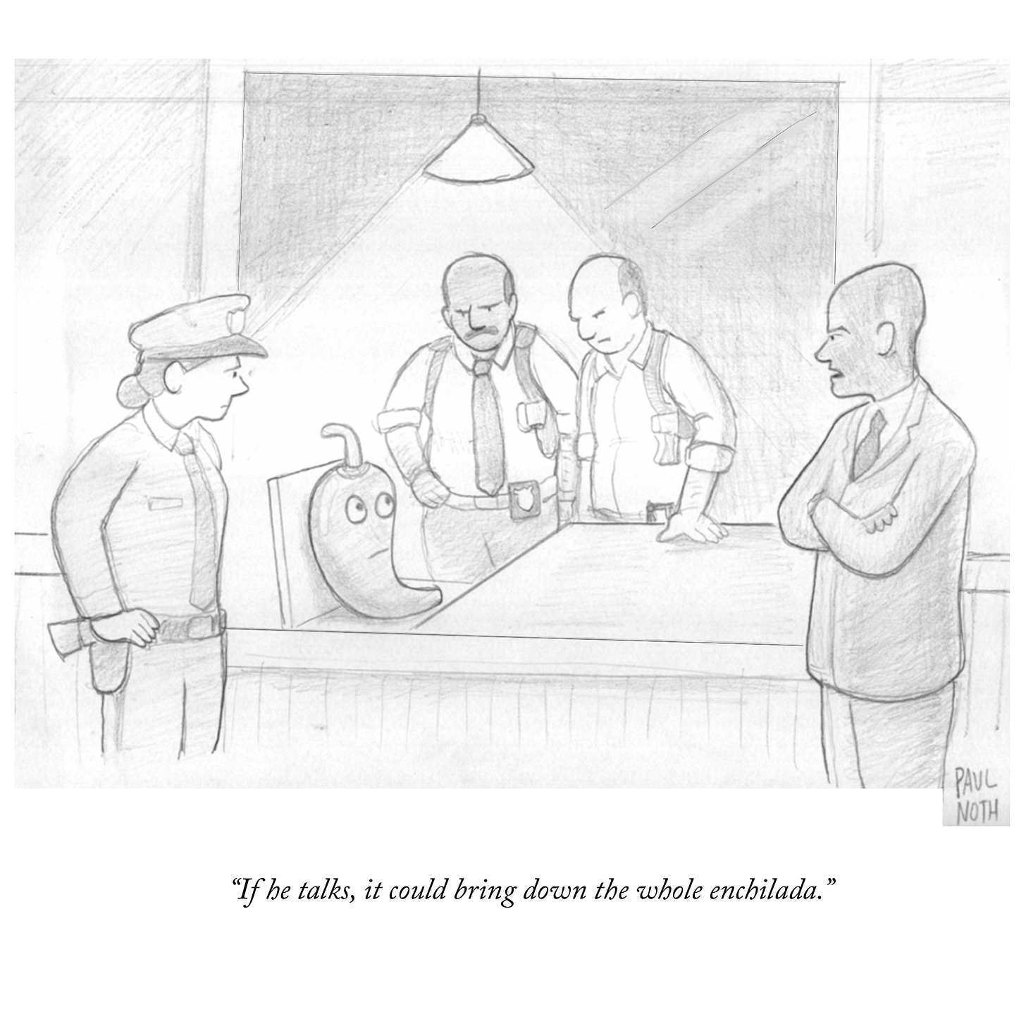 Since I was a kid, wordless cartoons have felt like magic to me. After my first sale to the magazine, I made it my mission to get one into print. I made sure every batch of ten included at least one completely visual joke. Three and a half years later, they finally bought this one.